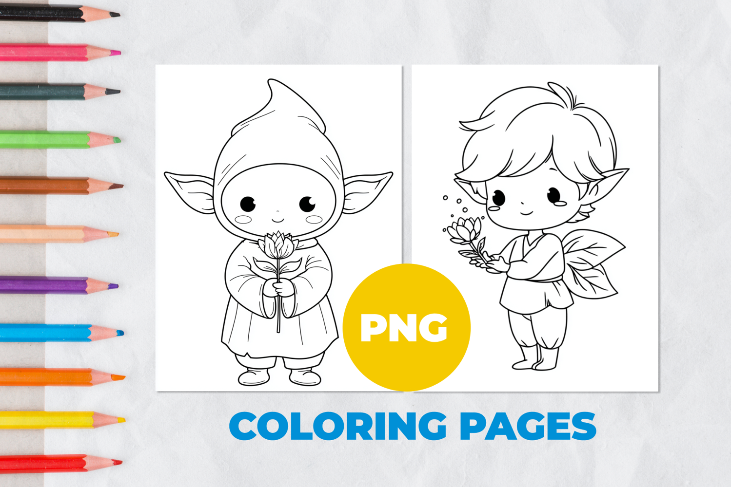 Children Cartoon Cute Boy Elf Wizard Kawaii Coloring Book Coloring Page Coloring Pages