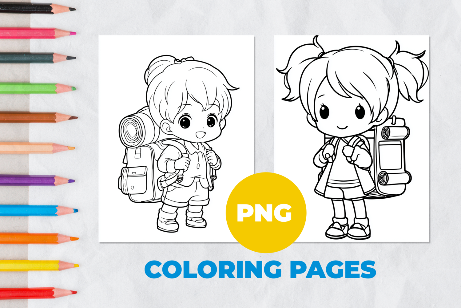 Children Cartoon Cute Boy Backpack Hike Kawaii Coloring Book Coloring Page Coloring Pages
