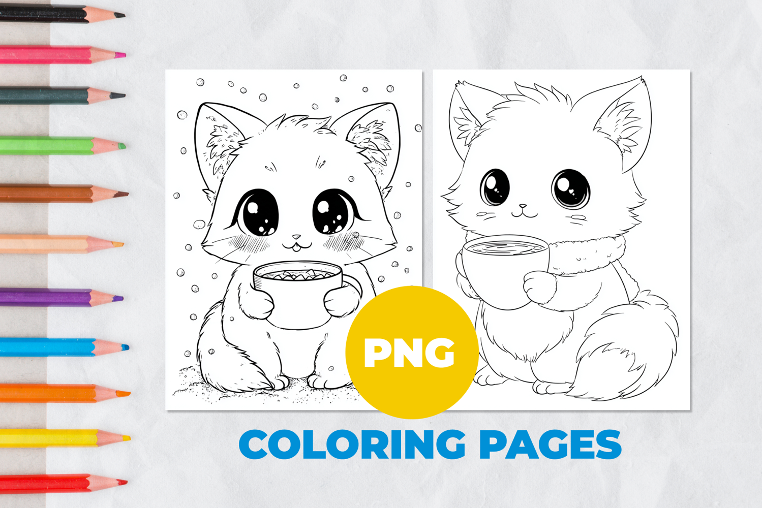 Little pet kitten with a cup Coloring Pages | Coloring book example image 1