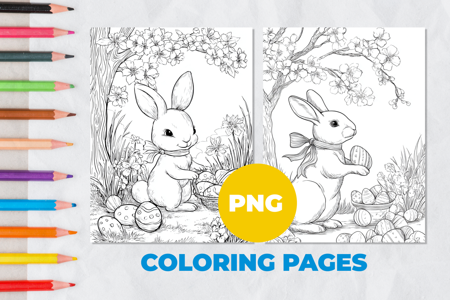 Easter bunny with eggs Coloring Page | Coloring book example image 1
