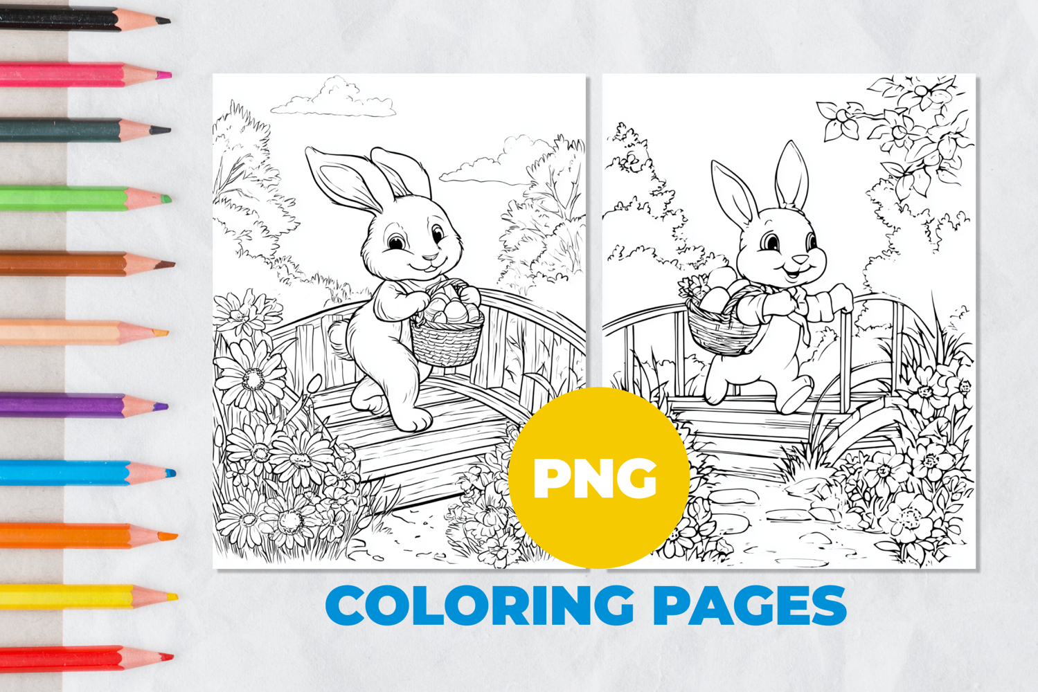Easter bunny with a basket Coloring Page | Coloring book example image 1