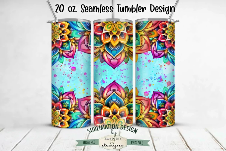 Sublimation Design 20 Oz Skinny Tumbler Tumbler Sublimation Seamless Tumbler Design 20 Oz Tapered Tumbler Seamless Tumbler Wrap Mandala Tumbler Colorful Mandala Tumbler Rainbow Colored Mandala Seamless Mandala Tumbler
