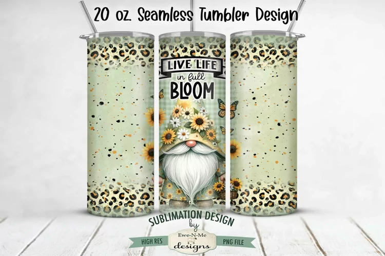 Sublimation Design Live Life In Full Bloom 20 Oz Skinny Tumbler Tumbler Sublimation Seamless Tumbler Design Gnome Tumbler 20 Oz Tapered Tumbler Seamless Tumbler Wrap Sunflowers Full Bloom Gnome