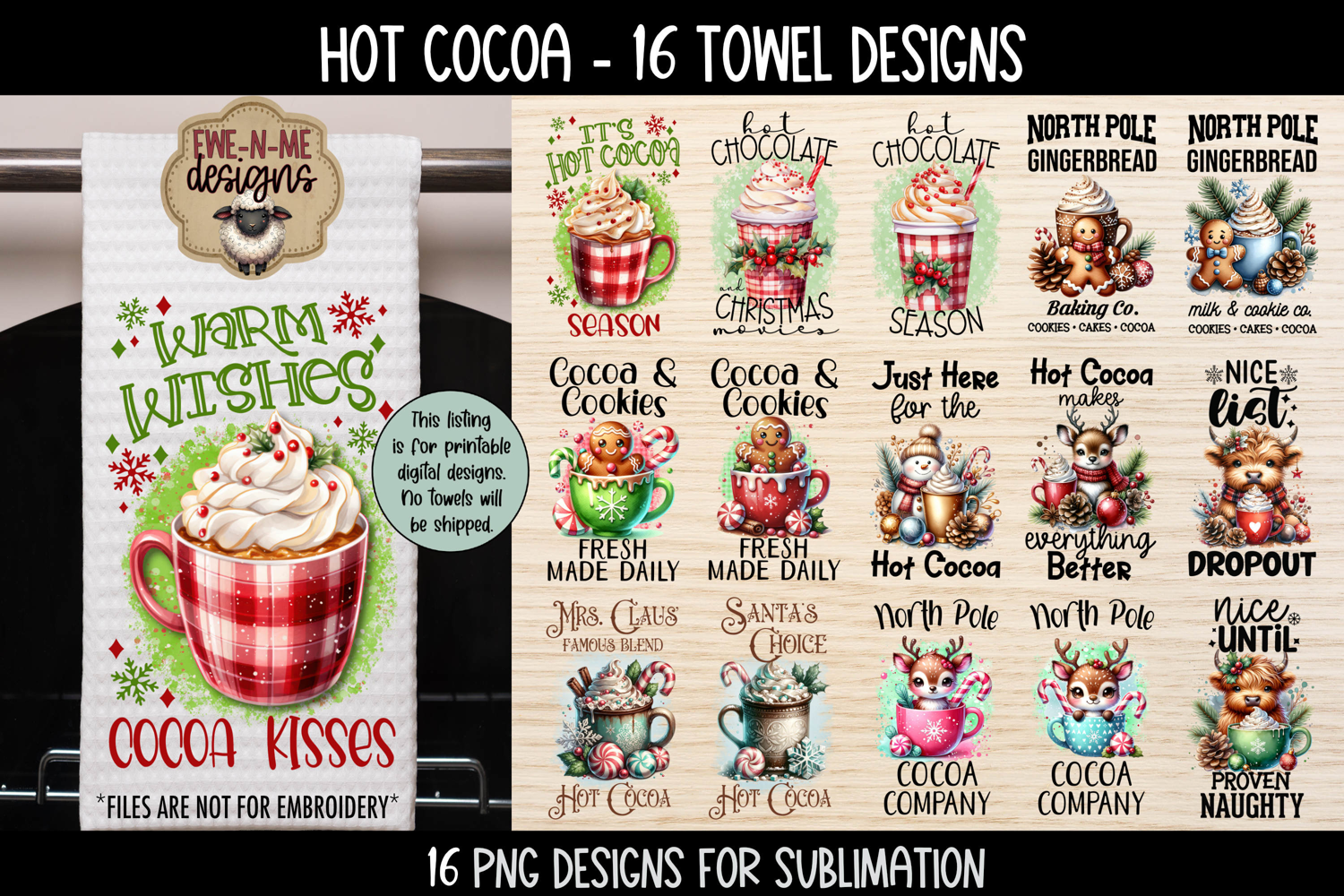 Holiday Kitchen Towel Bundle | 16 Christmas Cocoa PNG Files