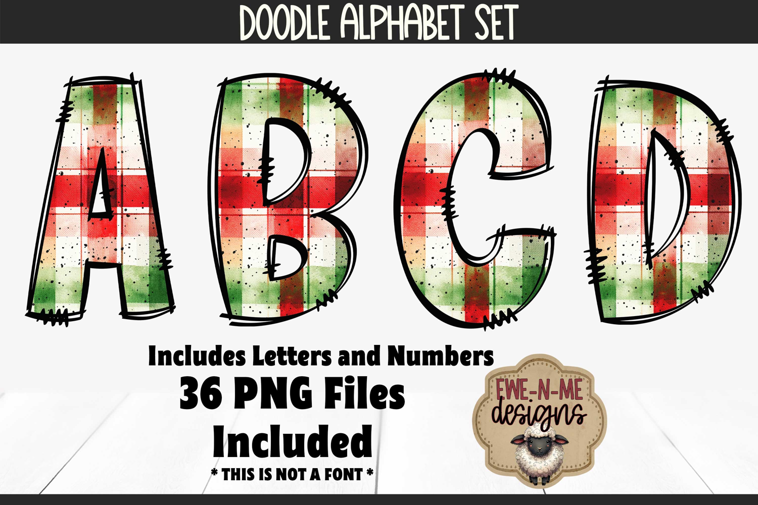 Christmas Plaid 4 Doodle Alphabet and Numbers | PNG Files example image 1