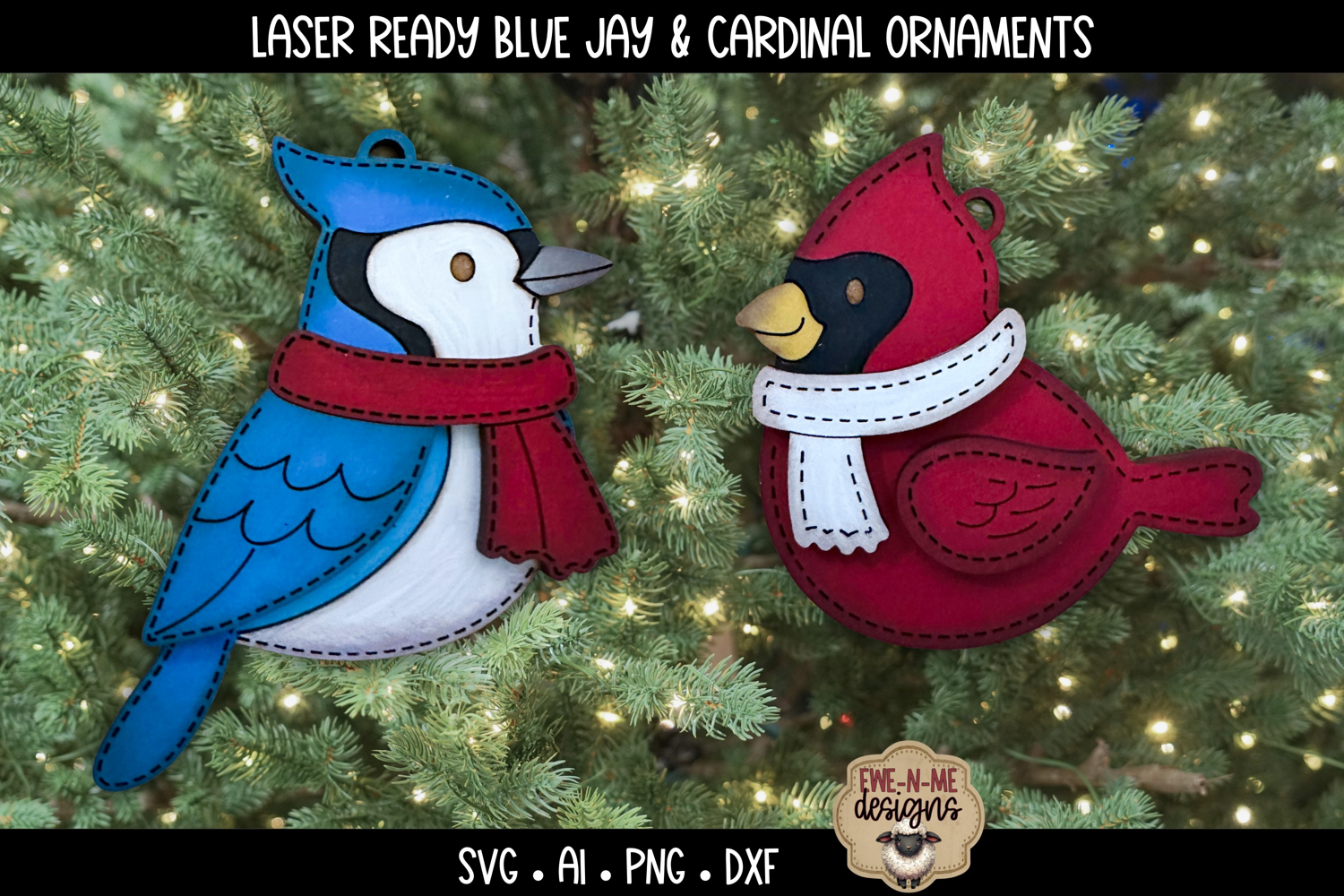 Blue Jay and Cardinal Laser Ready Ornaments | Winter SVG example image 1