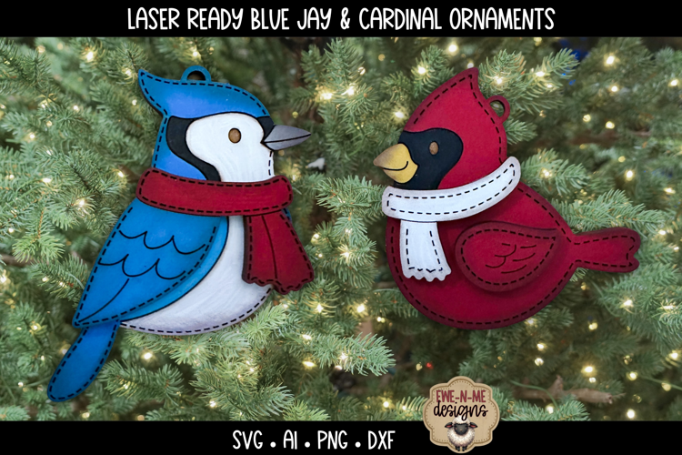 Blue Jay and Cardinal Laser Ready Ornaments | Winter SVG