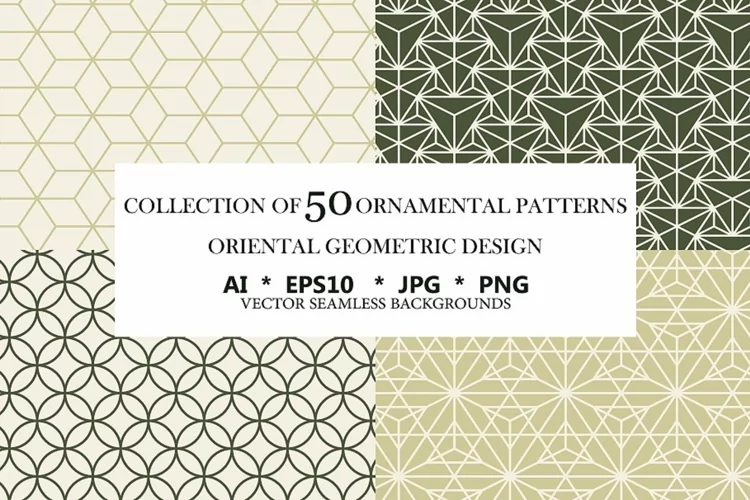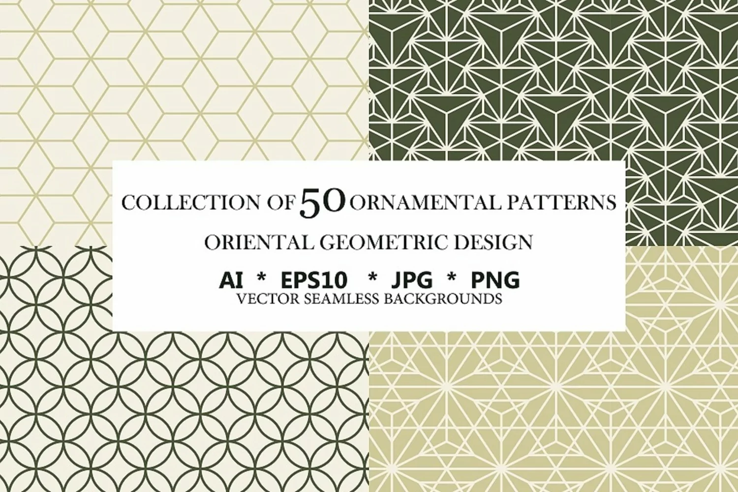 Collection of 50 seamless ornamental vector patterns. Trendy color oriental backgrounds. Tile mosaic design. Swatches included.
