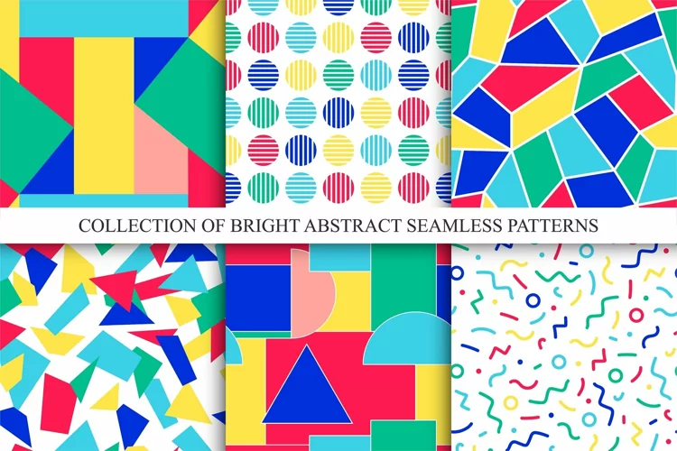 Retro Fun Vector Colorful Abstract Pattern Set Background Seamless Memphis
