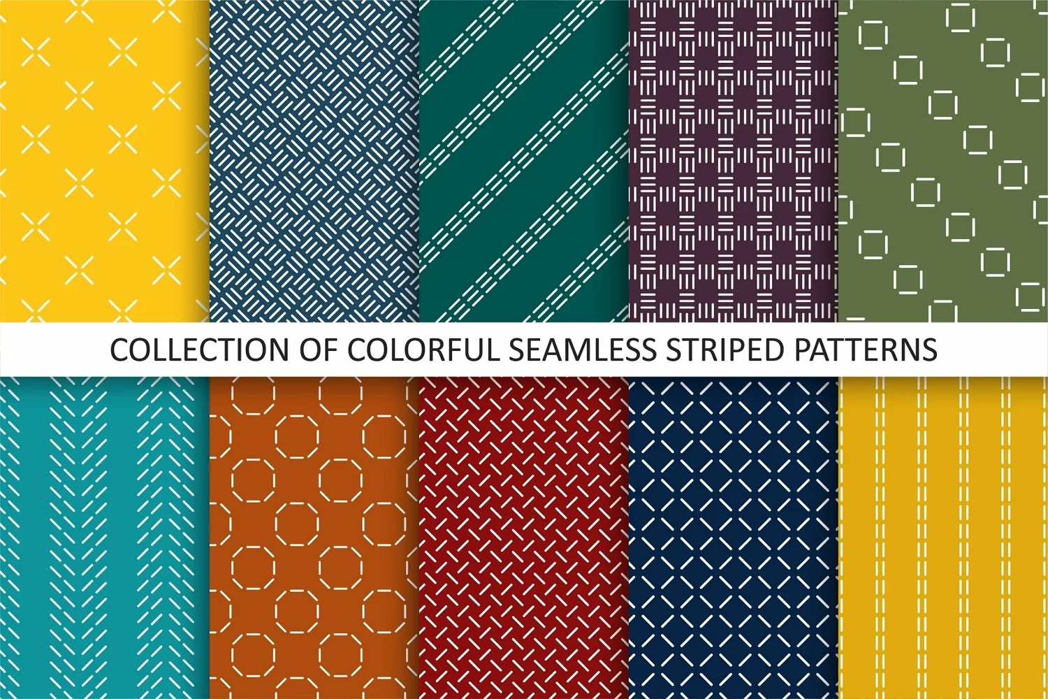 Collection of colorful striped seamless patterns. Bright minimalistic endless prints. Repeatable unusual simple backgrounds.