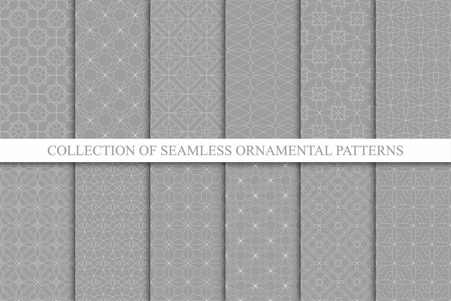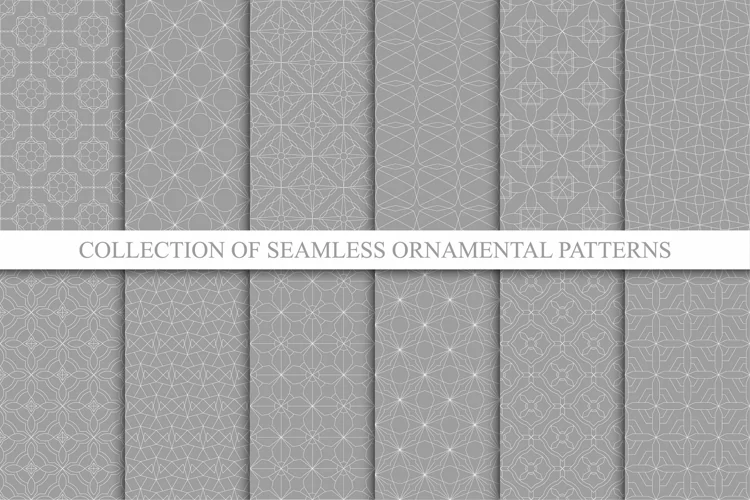 Vector Ornament Geometric Ornate Pattern Set Background Seamless Gray Textile