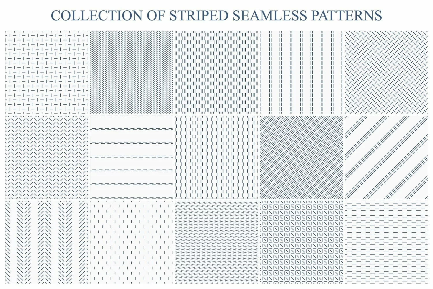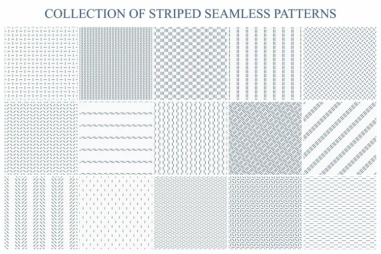 Collection of minimalistic striped seamless patterns. White and gray endless textures. Repeatable unusual simple backgrounds.