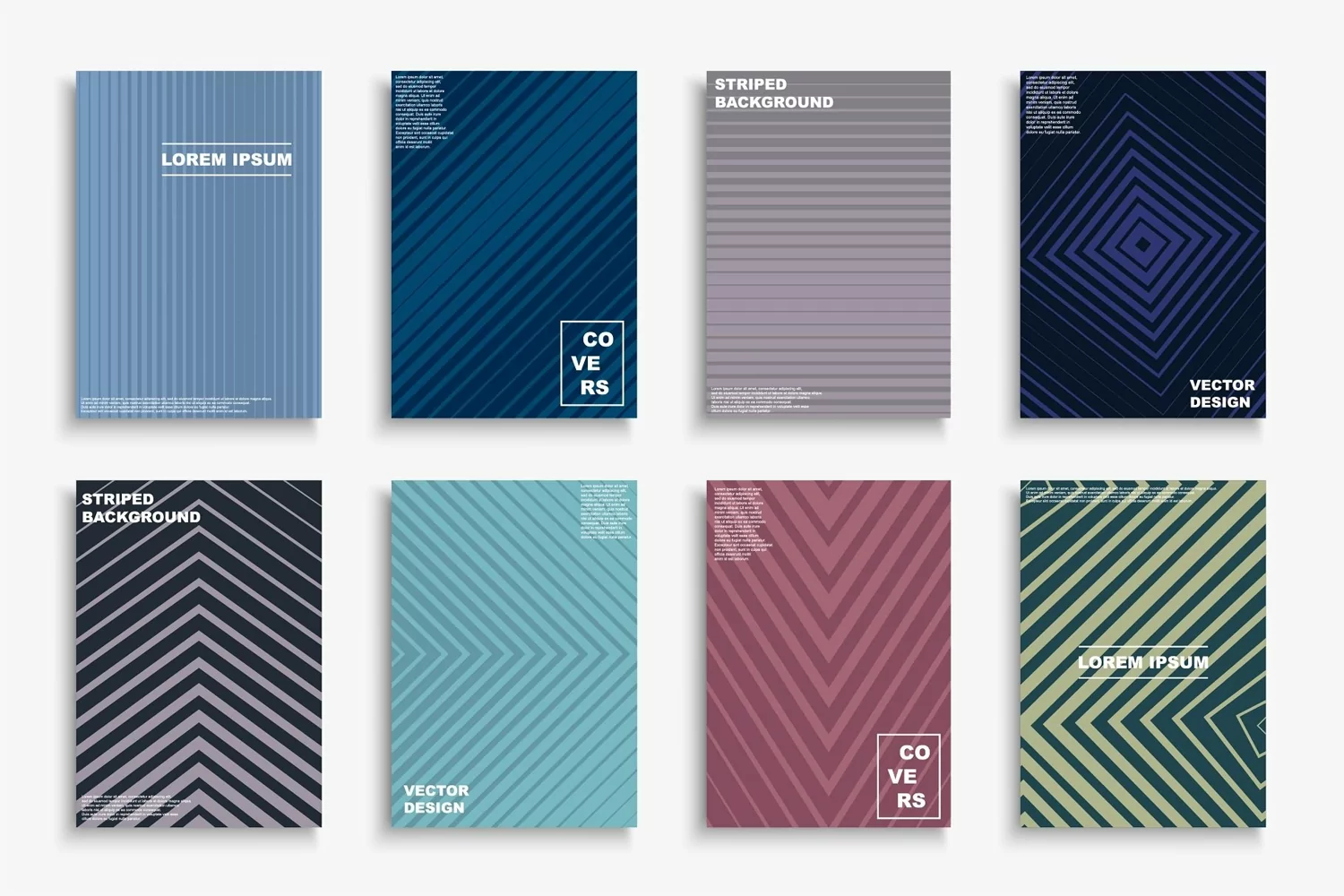Vector minimalistic abstract contemporary templates, posters, placards, brochures, banners, flyers, backgrounds and etc. Colorful gradient striped covers - trendy geometric design.