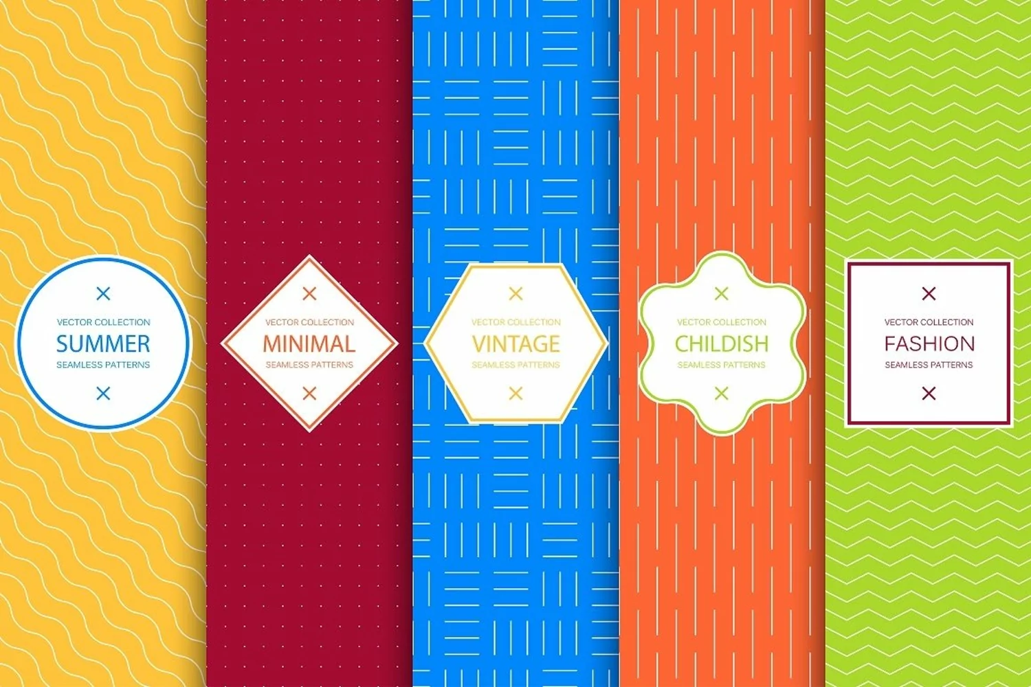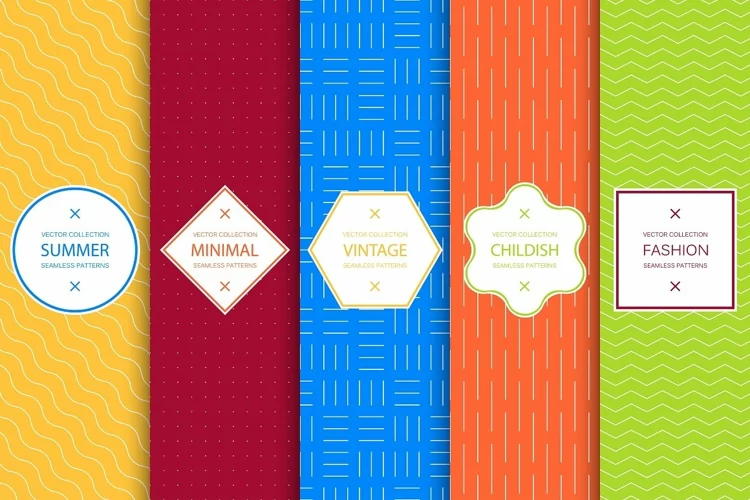 Collection of Summer seamless geometric patterns. Brigth unusual minimalistic design.