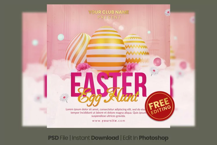 Easter Flyer Template, Easter Festival Flyer Template, Easter Celebration Editable PSD Template, Photoshop Template - Instant Download