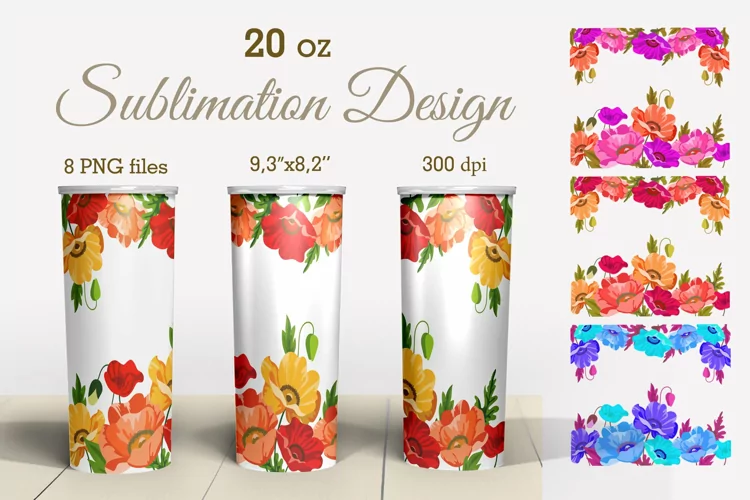Tumbler Sublimation Design Drawn Poppies 8 PNG files