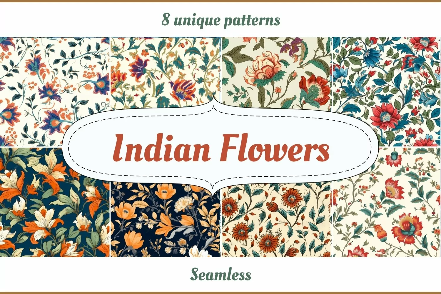 Seamless Digital Paper - Indian Wallpaper Flowers Patterns