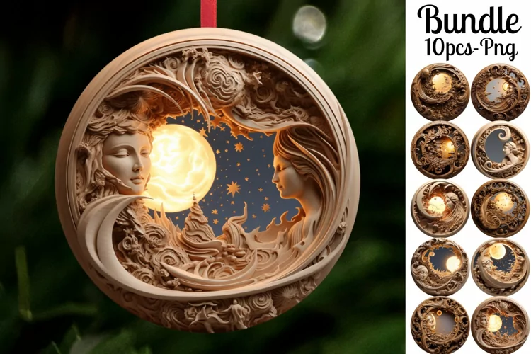 NEW 2023 - Stunning 3D Luna Magica Christmas Ornaments printable designs that look like they are glowing. Your tree will be amazing with these round Christmas sublimation designs.