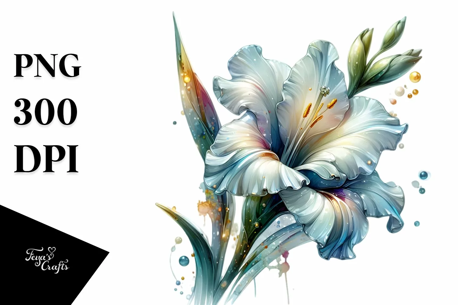 Glass Gladiolus with Golden Insertions | Watercolor Splash example image 1