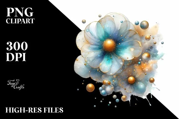 Glossy Cosmos with Golden Insertions Watercolor Splash