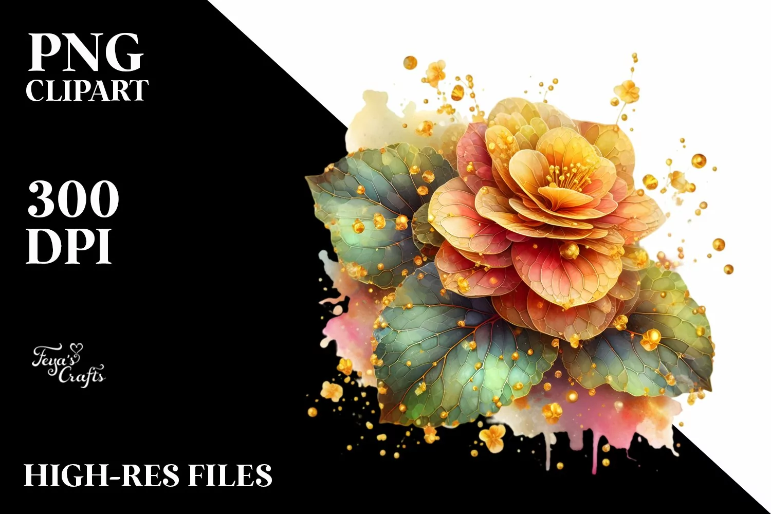 Glass Begonia with Golden Insertions Watercolor Splash example image 1
