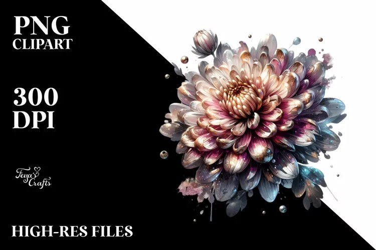 Shiny Chrysanthemum with Metallic Insertions Watercolor