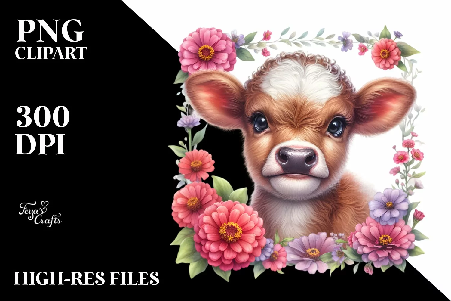 Similar Design Products to Cute Highland Cow with Zinnia Floral Frame | Sublimation |