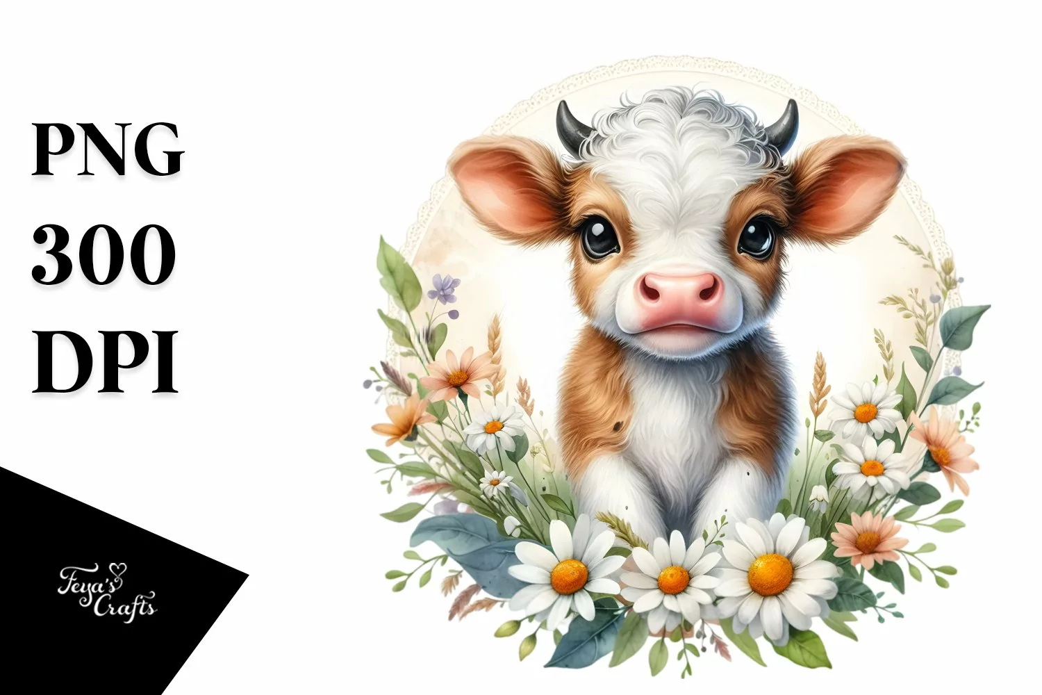 Cute Highland Cow with Daisy Floral Frame | Sublimation |