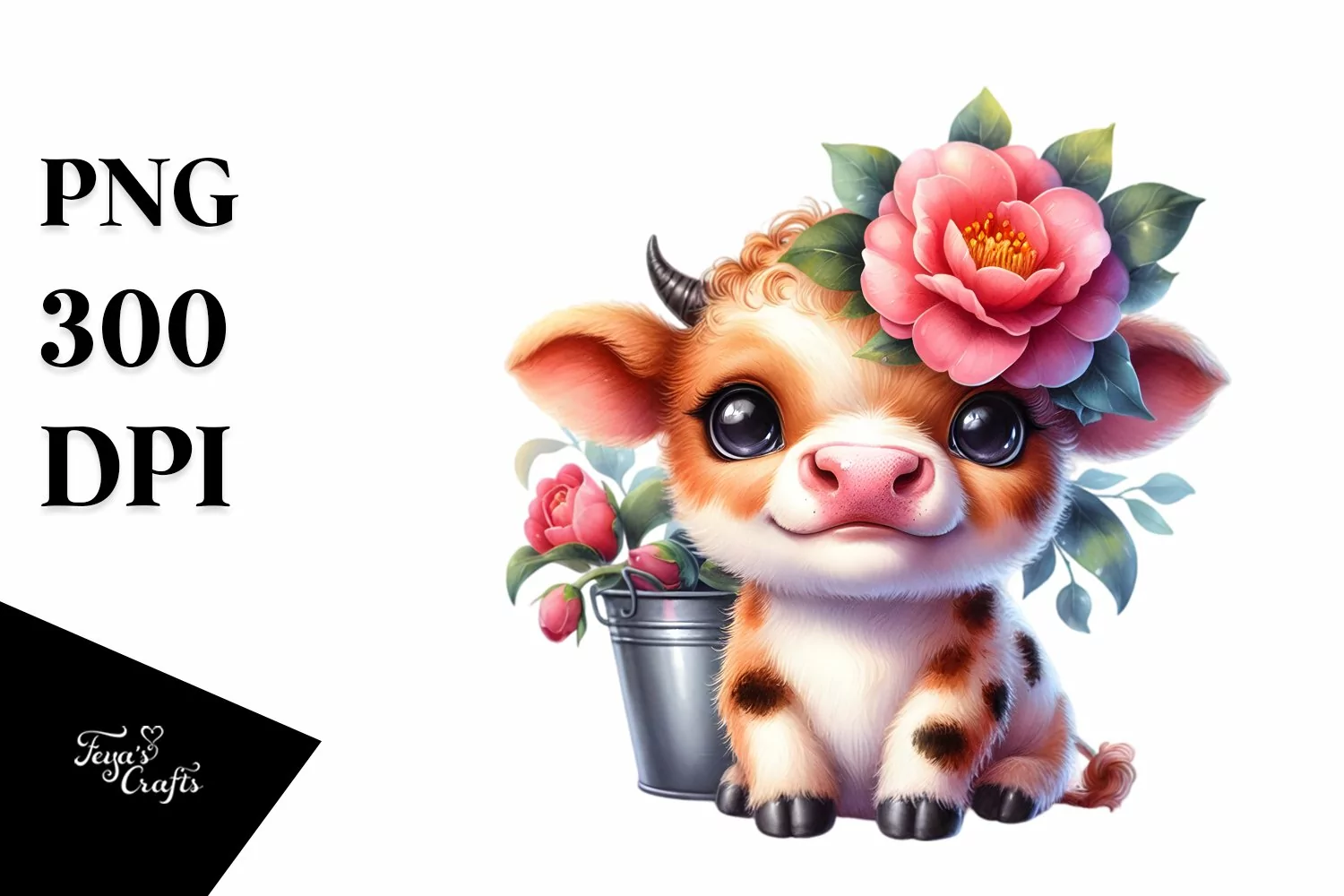 Cute Highland Cow with Camellia | Sublimation | Clipart