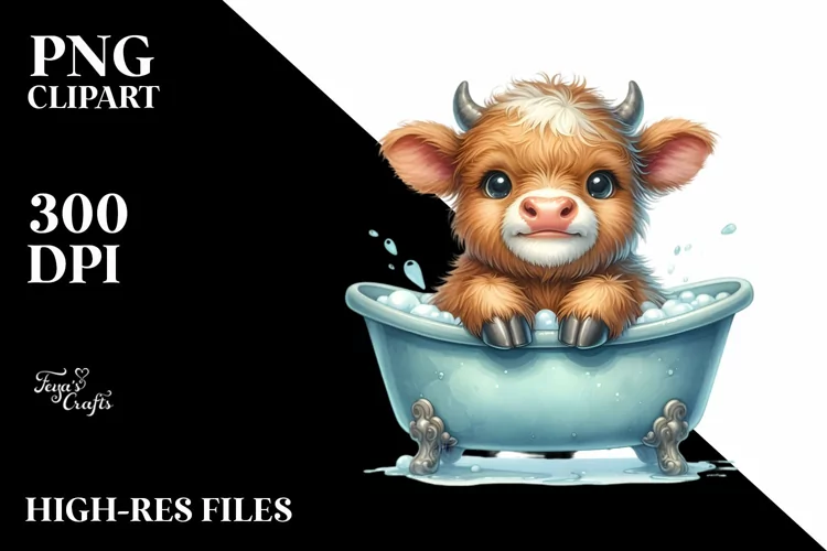 Similar Design Products to Watercolor Baby Highland Cow in a Bath Tub