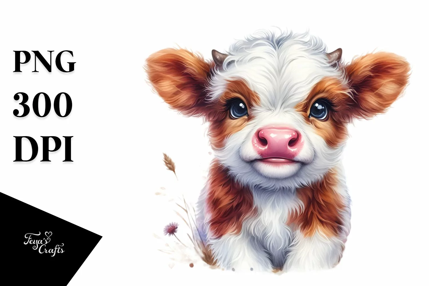 Similar Design Products to Smiling Baby Highland Cow with Watercolor Splash | Clipart