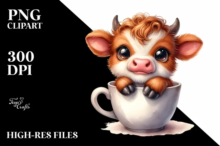 Similar Design Products to Smiling Baby Highland Cow in a Cup | Clipart