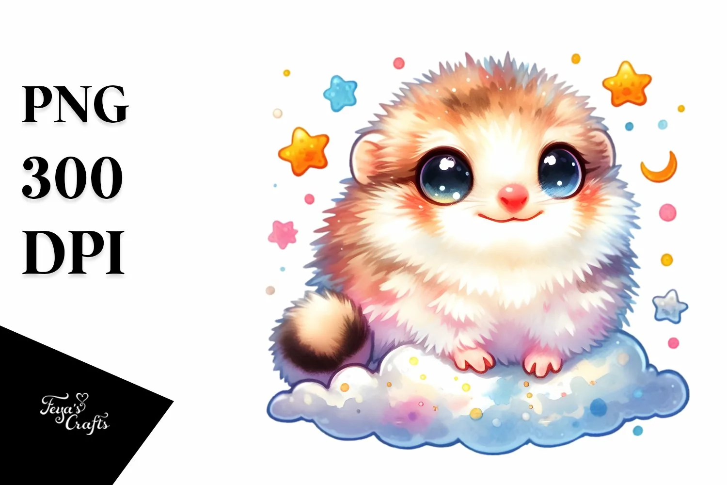 Colorful Baby Lemming with Stars and Clouds | Clipart example image 1