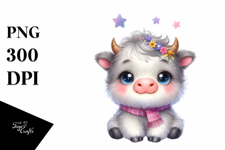 Similar Design Products to Colorful Baby Musk Ox with Moon Stars | Clipart