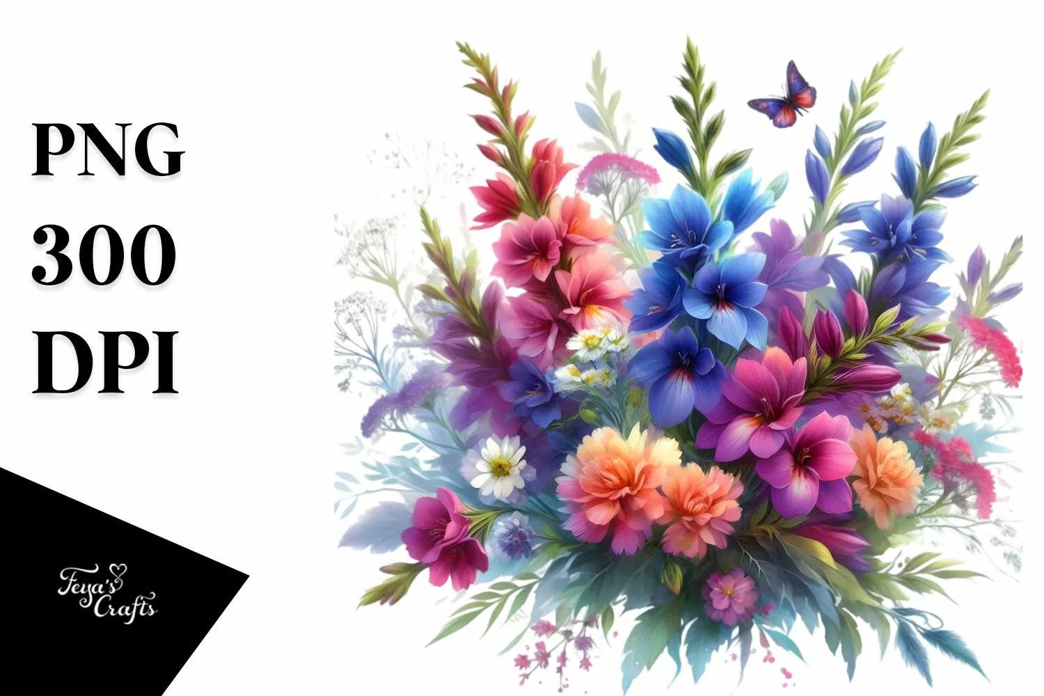 Vibrant Colorful Watercolor Buquet with Lobelia example image 1