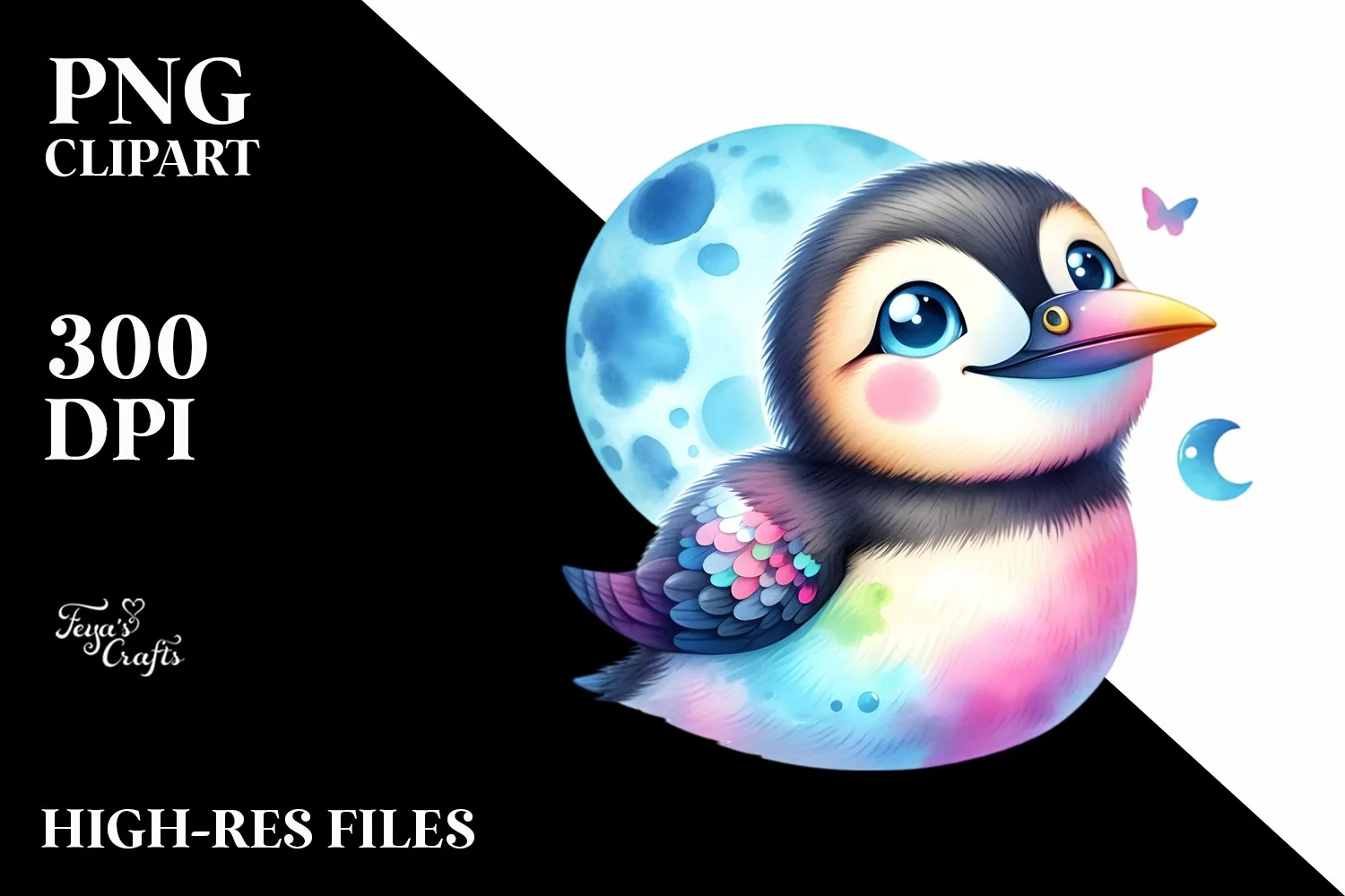 Colorful Baby Brunnich's Guillemots with Moon Clipart example image 1