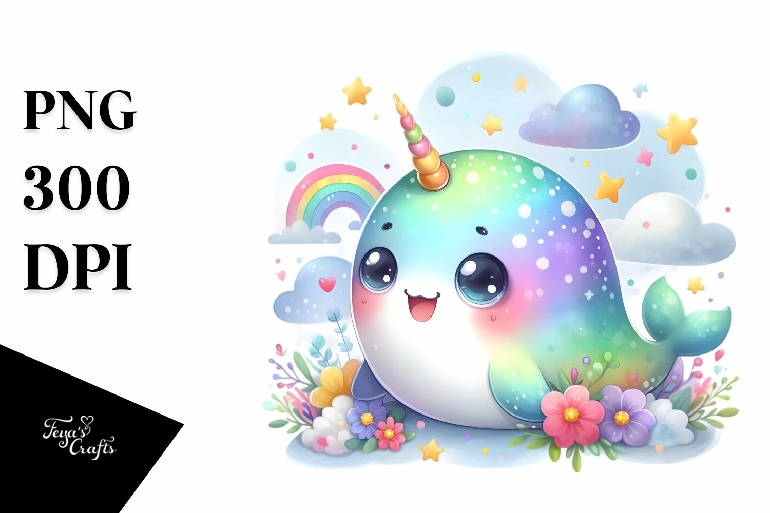 Colorful Baby Narwhal Smiling | Clipart example image 1
