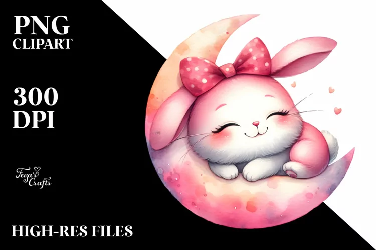 Colorful Smiling Baby Rabbit on Moon example image 1