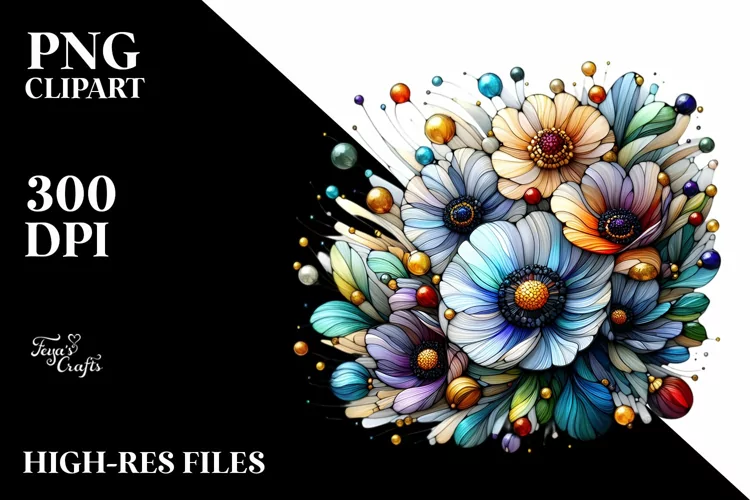 Similar Design Products to Colorful Stained Anemone | Sublimation | Clipart