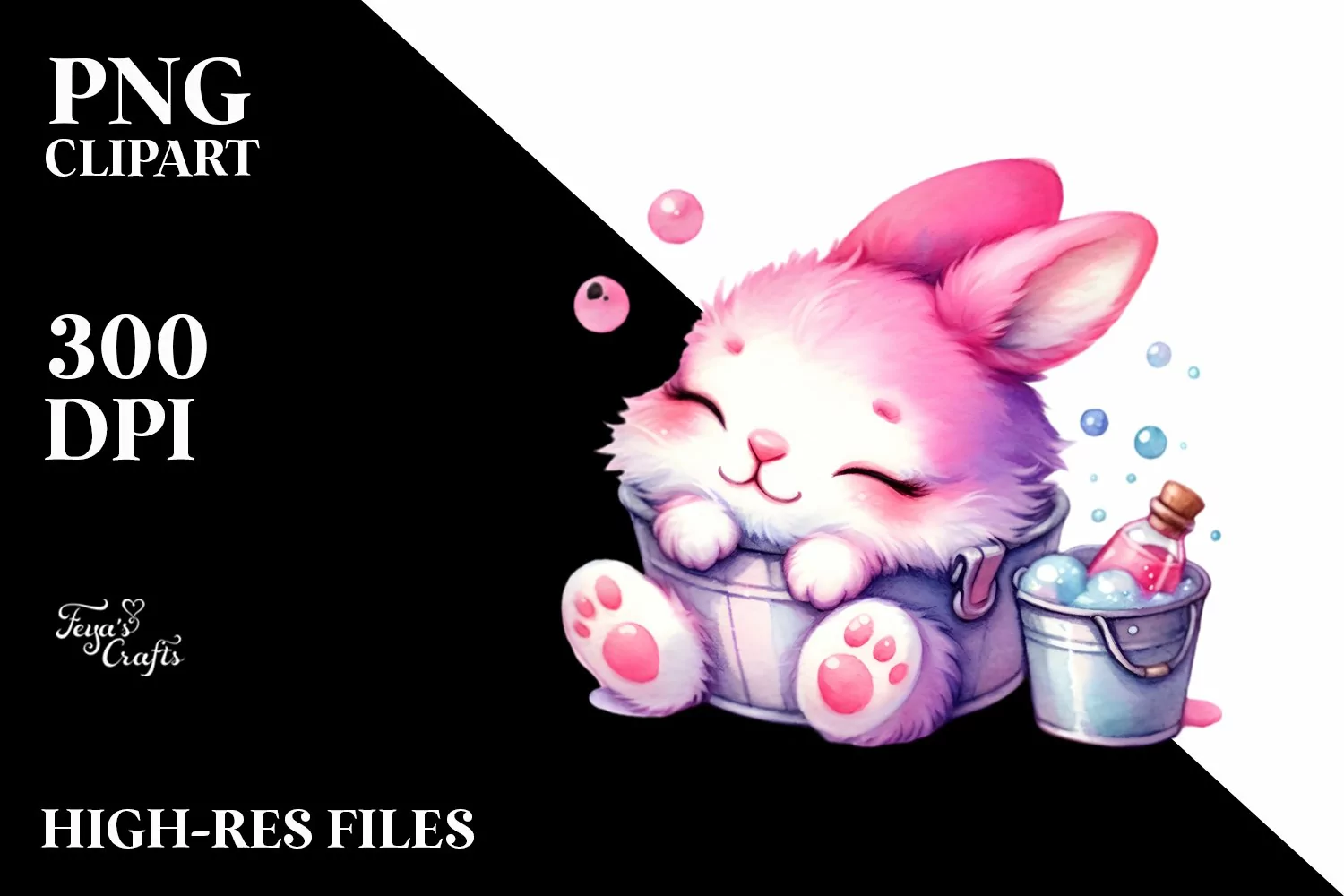 Colorful Baby Bunny Sleeping Bublly | Sublimation | Clipart example image 1