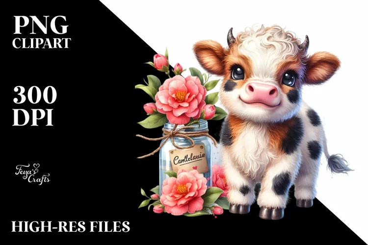 Similar Design Products to Colorful Smiling Highland Cow Camellia Ornament Clipart