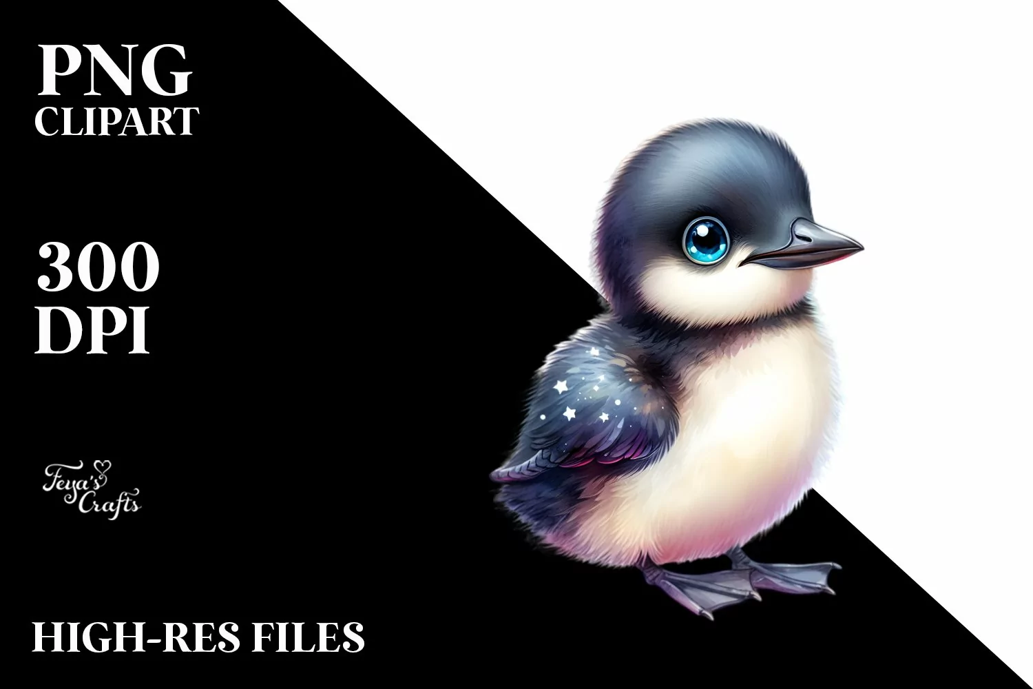 Colorful Baby Brunnich's Guillemots with Stars and Clouds | example image 1