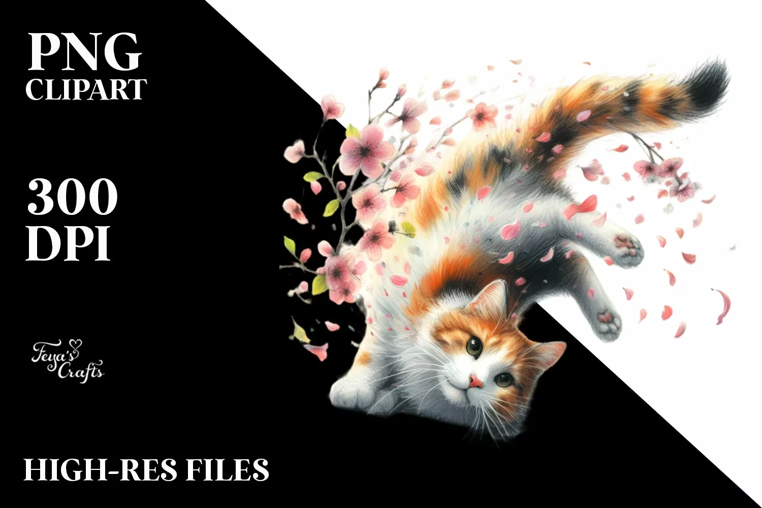 Similar Design Products to Cat Tumbling with Spring Petals | Sublimation | Clipart