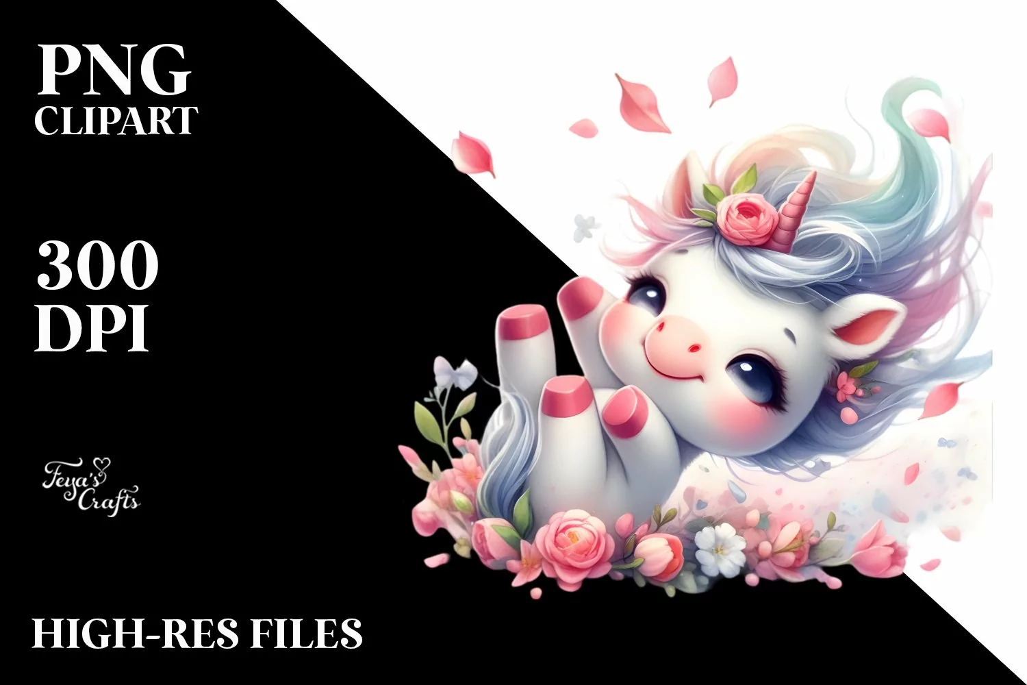 Cute Baby Unicorn Tumbling with Spring Petals | Sublimation
