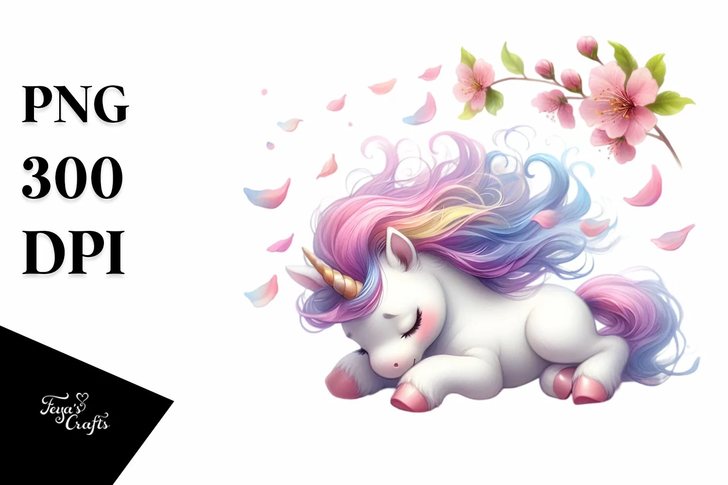 Cute Baby Unicorn Tumbling Spring Petals Wind example image 1