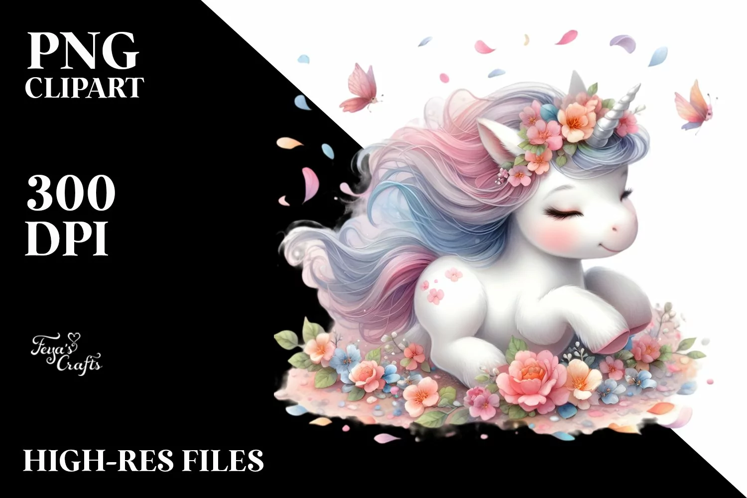 Cute Baby Unicorn Tumbling Spring Petals Wind example image 1