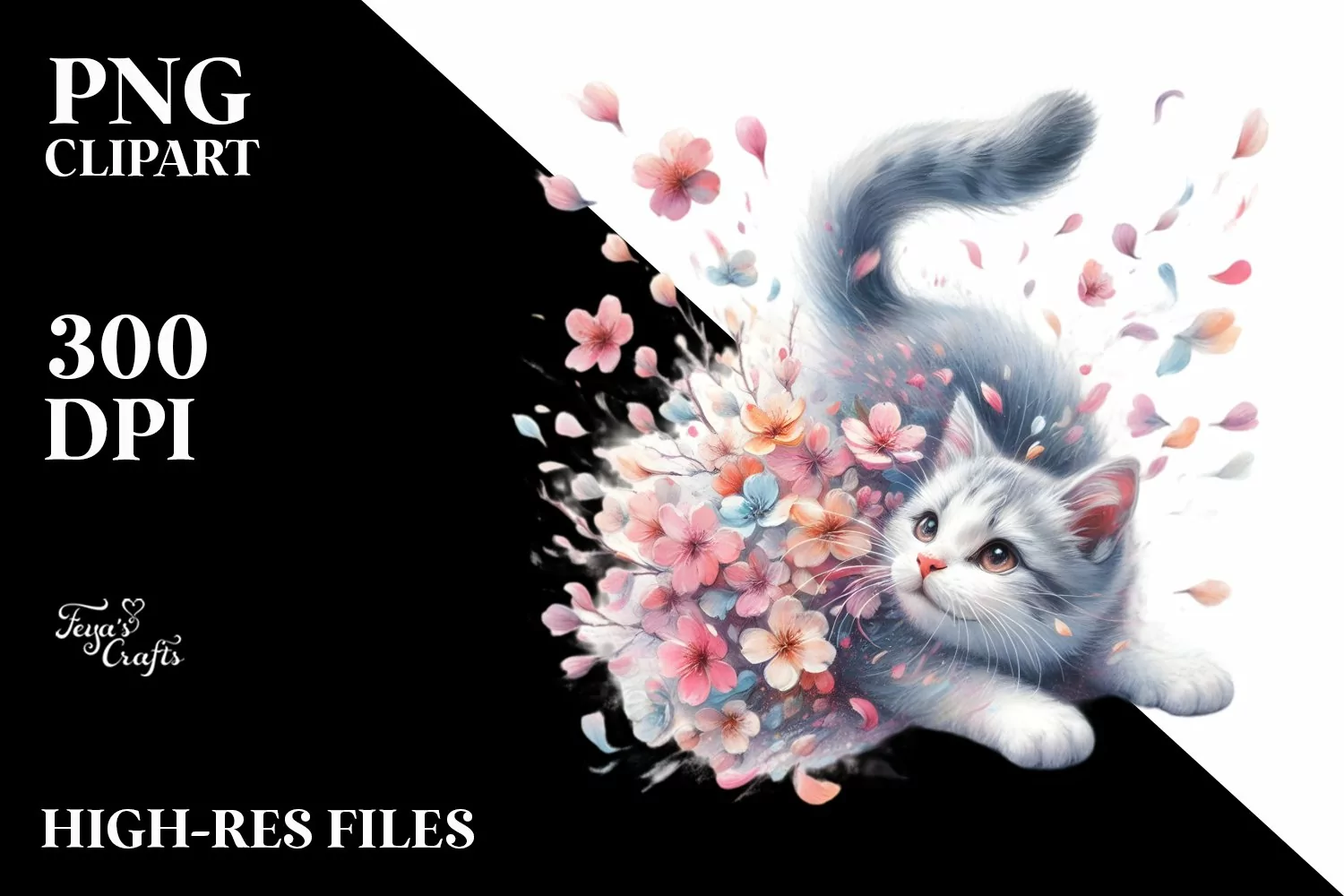 Cat Tumbling Spring Petals Watercolor example image 1