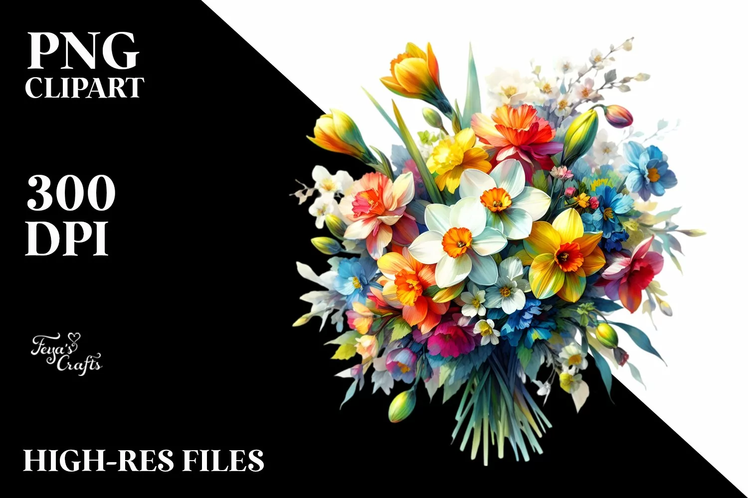 Vibrant Colorful Buquet Narcissus | Clipart example image 1