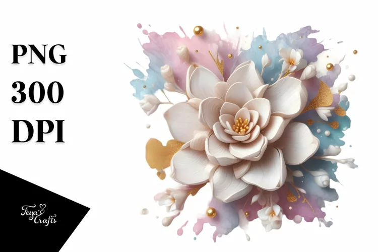 Watercolor Sticker Summer Easter Flower Wooden Pastel Mothersday Sublimation Gardenia