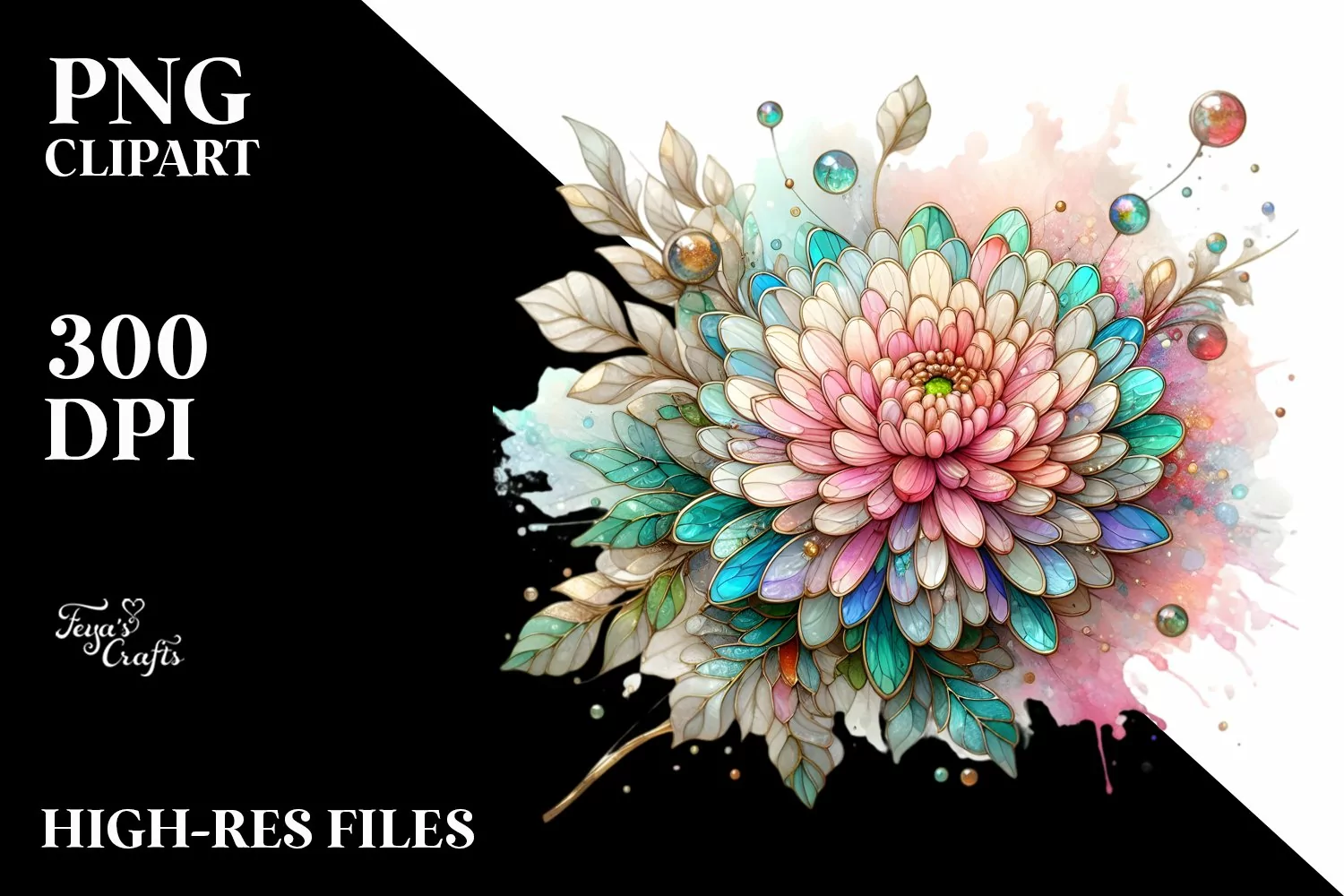 Pastel Chrysanthemum with Inserts Watercolor Splash |
